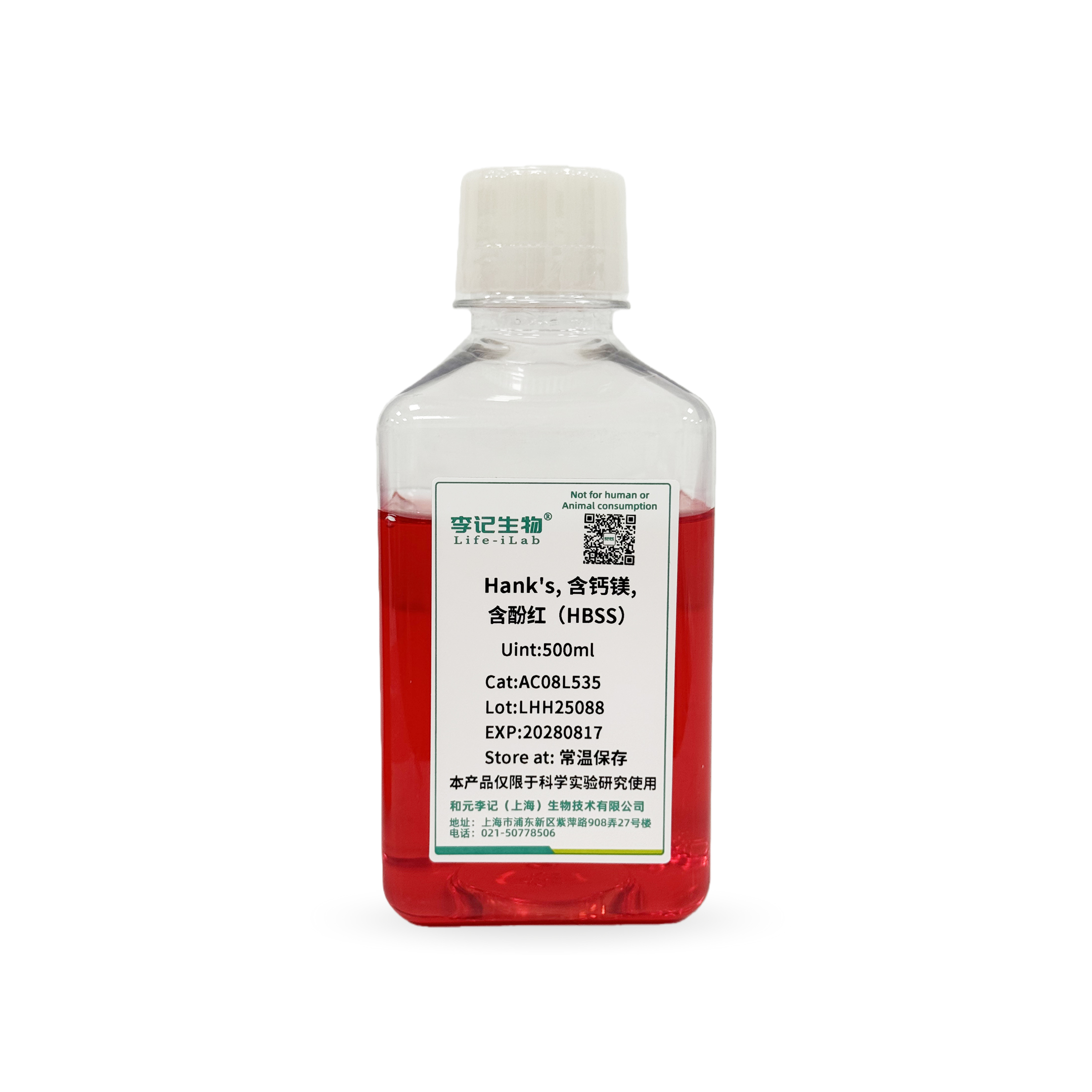 Hank's, 含钙镁, 含酚红(HBSS) | AC08L535 | 500mL |